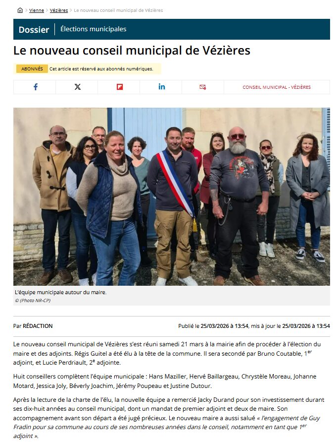La première séance du nouveau Conseil municipal a eu lieu le samedi 21 mars 2026. Retrouvez le compte-rendu du Conseil municipal ici Compte-rendu du Conseil...